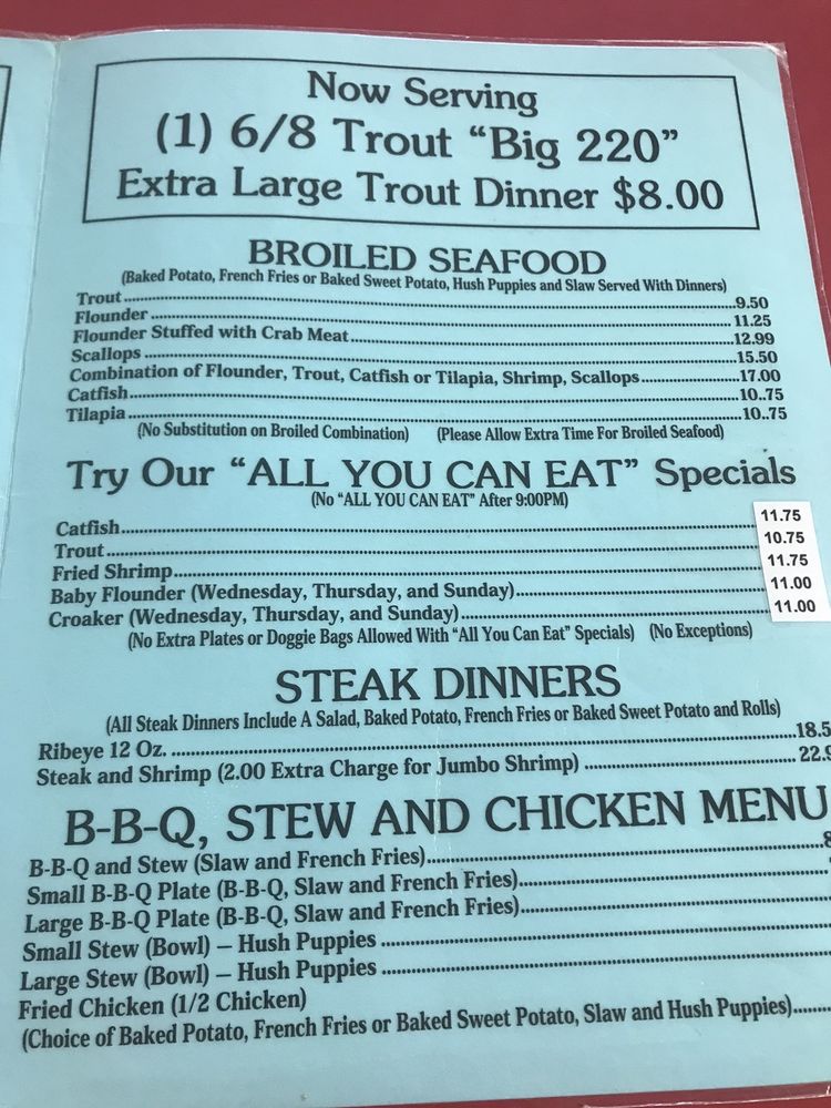 Located in Henderson, NC, 220 Seafood Restaurant offers a diverse menu featuring burgers, New American cuisine, and, of course, delicious seafood options. The restaurant provides a classy ambiance with amenities like free Wi-Fi, outdoor seating, and a private parking lot. Customers rave about the generous portions and friendly service, with some calling it their go-to spot multiple times a month. While the bathrooms may need updating, the food quality and reasonable prices make it a popular choice for locals and visitors alike. With a menu heavy on fried seafood but with other options available, 220 Seafood Restaurant is highly recommended for those looking for a satisfying meal in a laid-back setting.